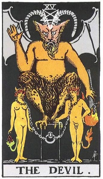 In short, the DEVIL card of tarot is a complex mix of religious, mythological, and folkloric symbols. Christian, classical, and medieval influences have combined to create a representation of the devil that is both terrifying and fascinating.