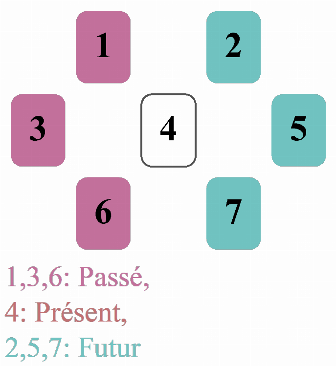 Cette méthode s'appuie sur des positions fixes, faciles à interpréter, tout en introduisant la lecture par association, caractéristique du Petit Lenormand. Ce tirage est idéal pour explorer une question de développement personnel ou des préoccupations générales.