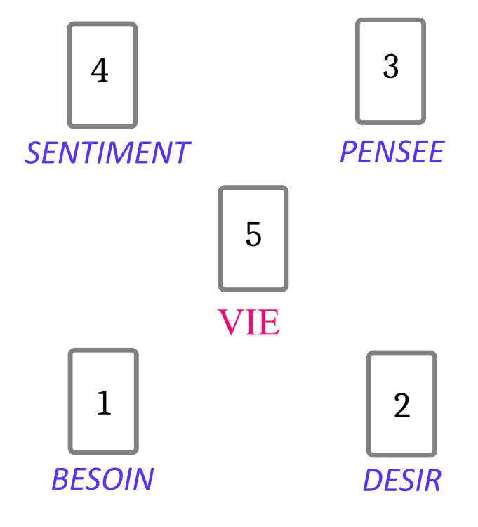 Tirage Simplifié à 5 cartes (au lieu de 10) : Pour les groupes "Terre", "Feu", "Air", "Eau", tirez une seule carte (parmi les numérales et les figures réunies en 4 tas, un pour chaque couleur). Pour le groupe "Vie", tirez une seule carte parmi les 22 Triomphes.