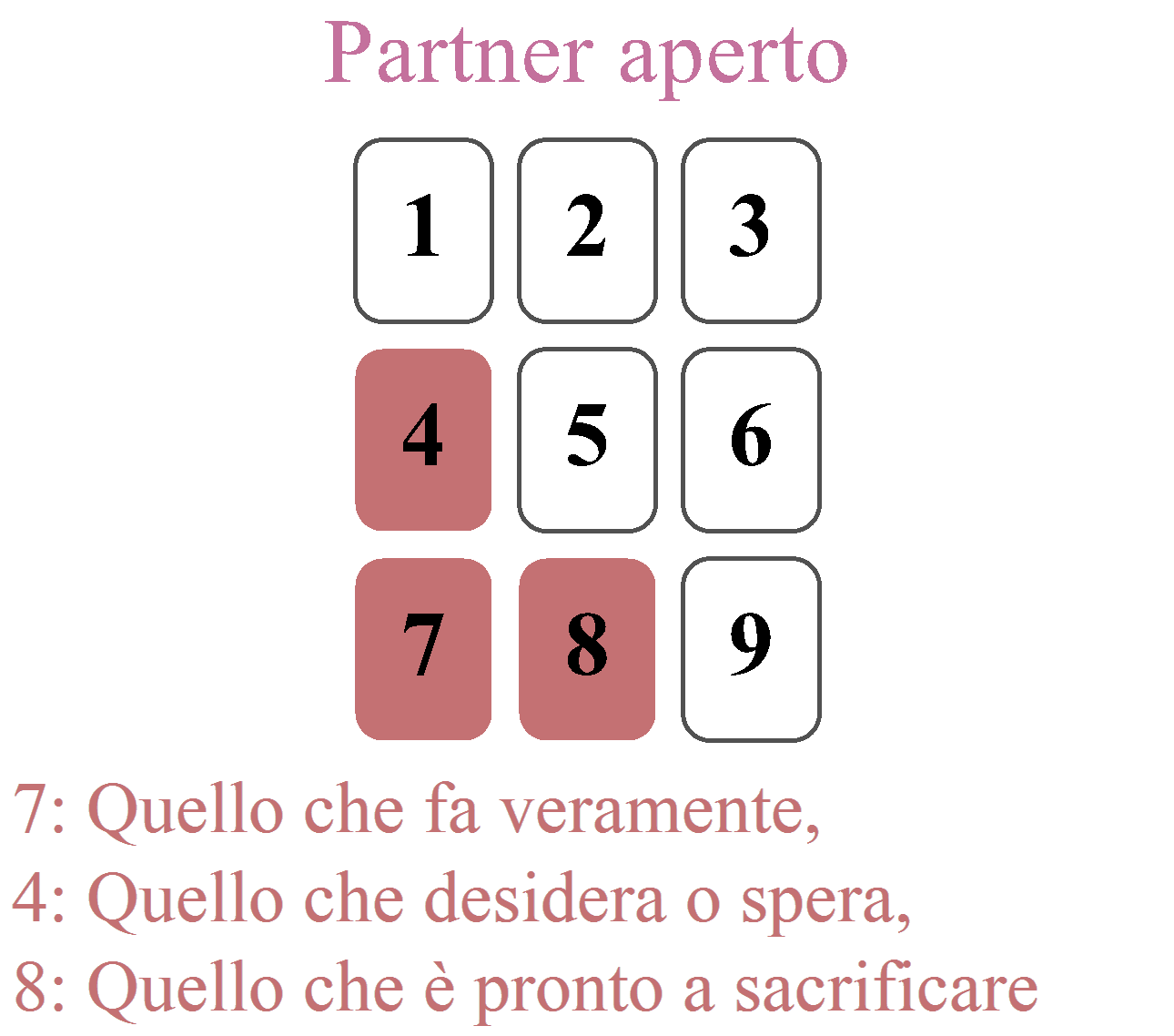 Questa parte del consulto è dedicata a esplorare le azioni, desideri e sacrifici del partner che si mostra più aperto nella relazione. Queste tre posizioni rivelano non solo le sue intenzioni, ma anche quello che è pronto a mettere in gioco.