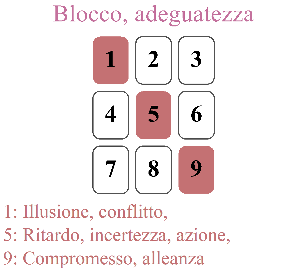 Le carte situate agli angoli (1, 3, 7, 9) sono indicatori importanti delle forze che sostengono o bloccano lo sviluppo della situazione:
