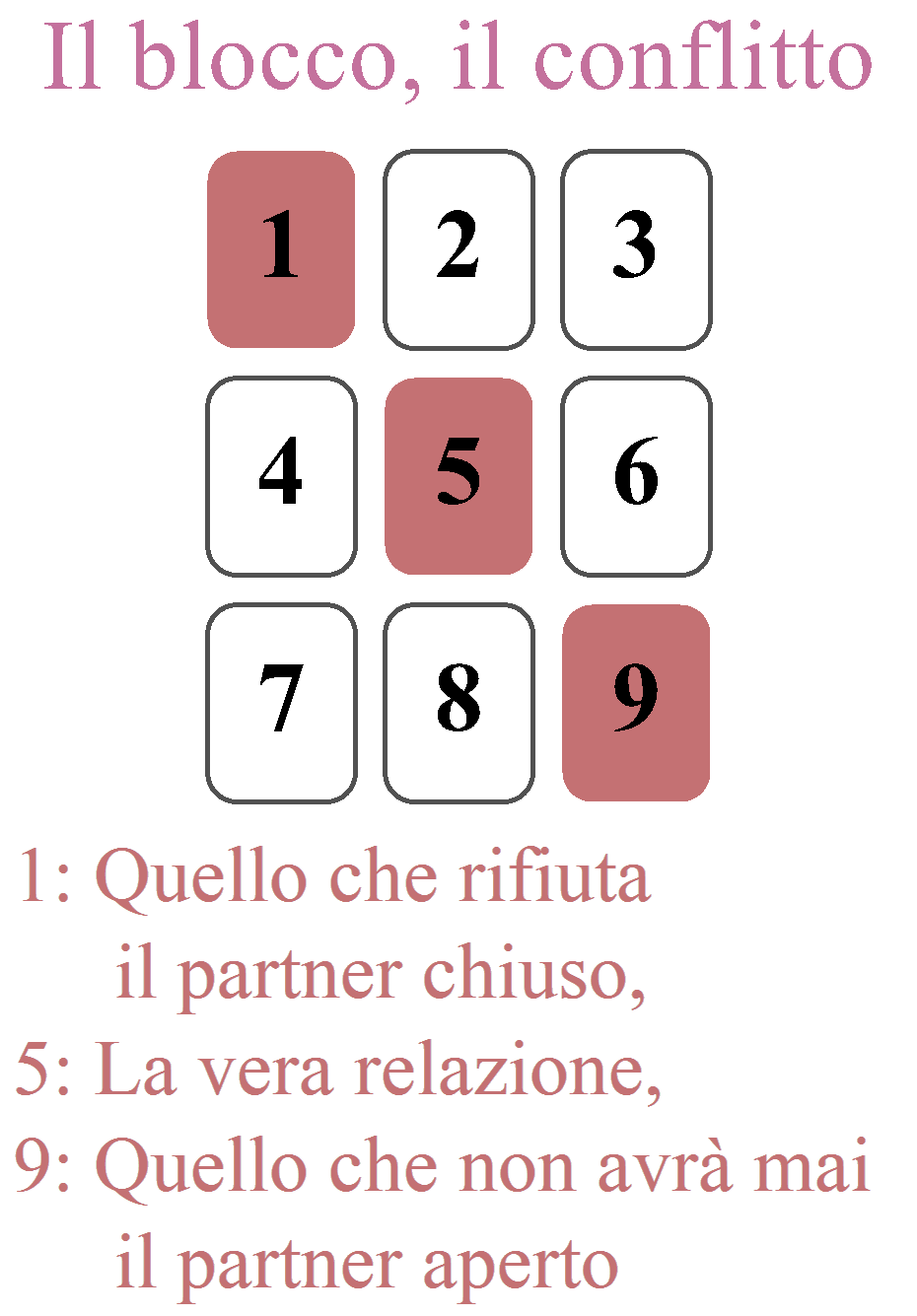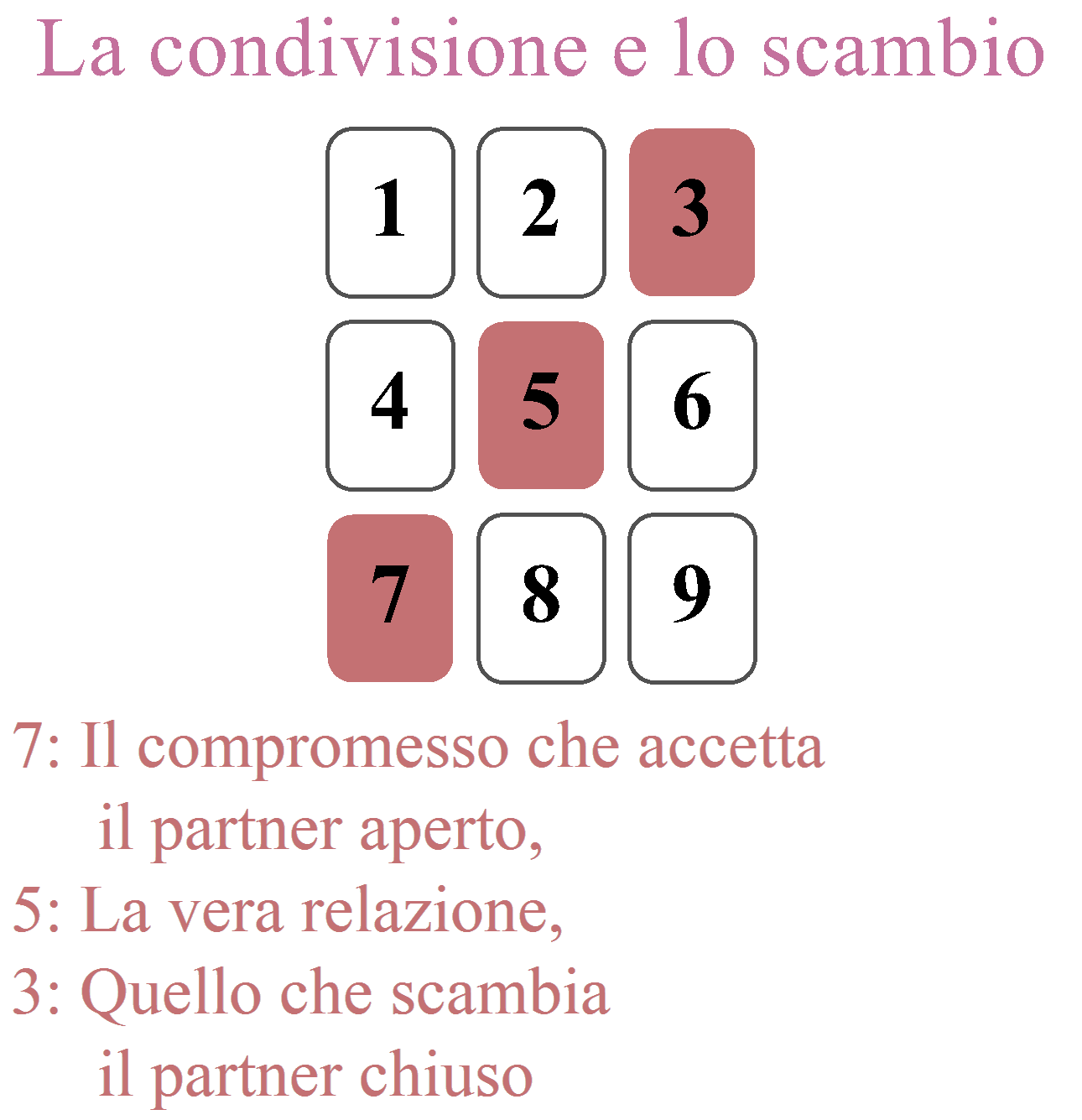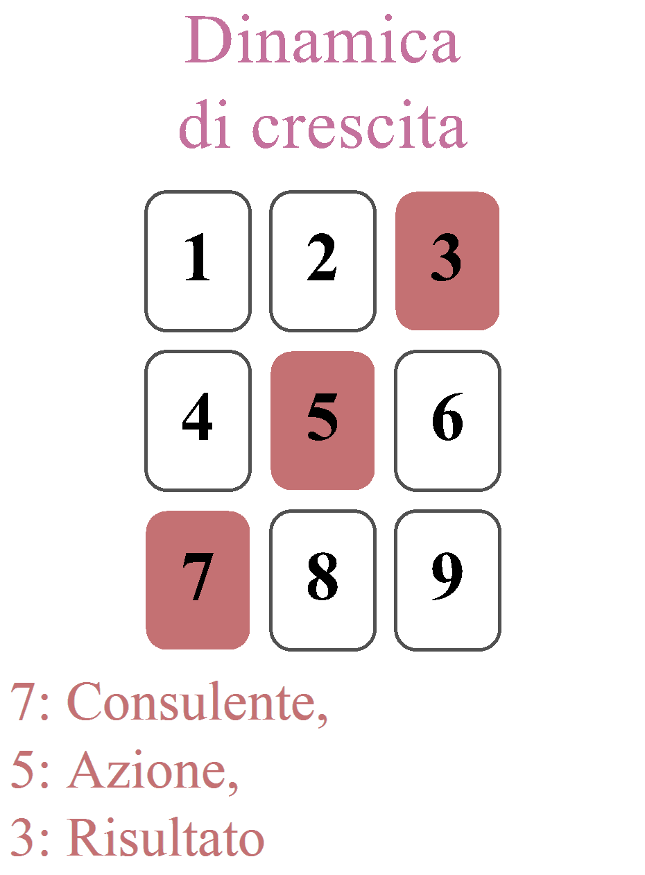 Non è automatico che il/la consultante sia in posizione n°7. Può essere in posizione n°3 perché, per esempio, vorrebbe mettere fine alla relazione ma non sa come fare, o semplicemente si domanda se deve proseguire la relazione, mentre il suo partner non si pone (ancora) una tale domanda.